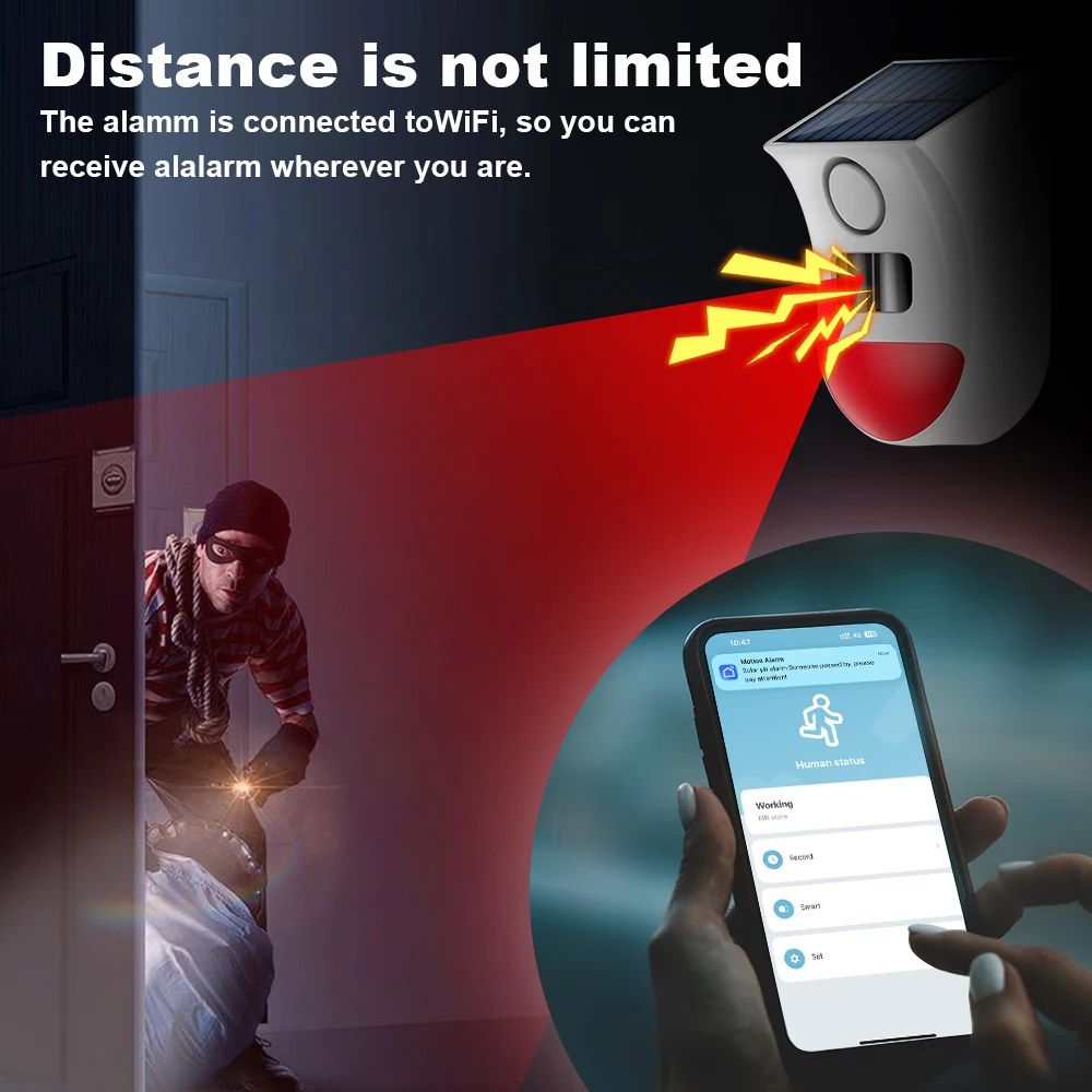 Smart Solar Alarm Siren – Outdoor Security Sensor - The ultimate outdoor security solution for protecting your home, yard, garage, or business with intelligent motion detection and powerful sound alerts. Designed for modern smart homes, this device connects to the Tuya or Smart Life app, allowing you to monitor, control, and receive alerts instantly from anywhere.